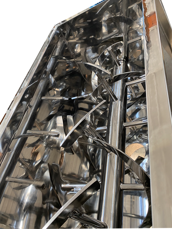 3. The positive and reverse rotating ribbon blender is installed on the same horizontal axis, forming a low power and efficient mixed environment. The ribbon blender is generally made into double or three layers. The outer spiral collects the material from both sides to the center, and the inner spiral transfers the material from the center to both sides, which can make the material form more vortex in the flow. Accelerate the mixing speed, improve the mixing uniformity;